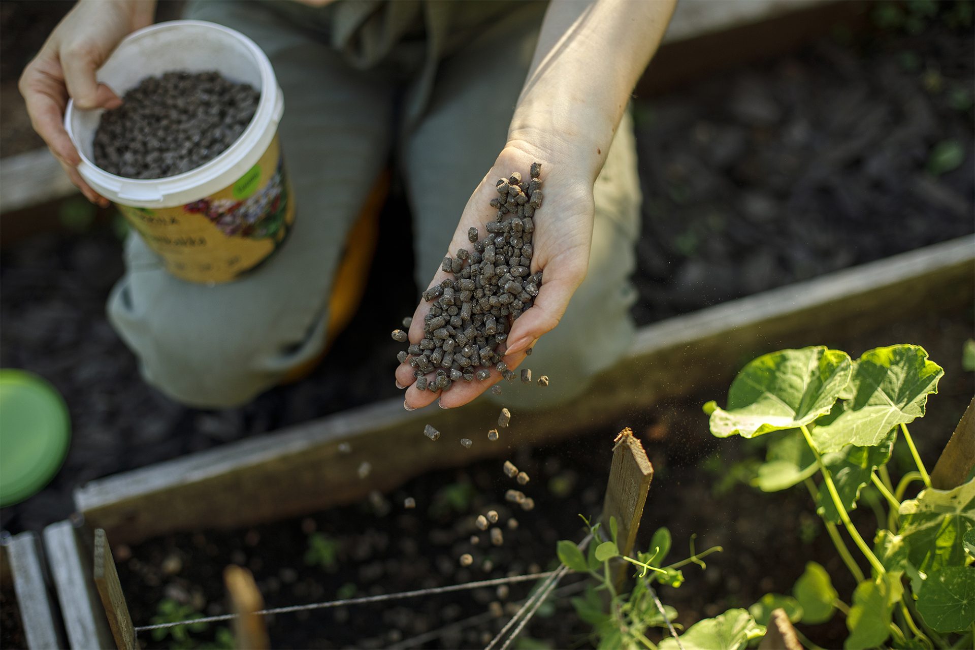 ”Kokeile varastolannoitusta ruukkuihin tai maahan kasvien lähistölle.”